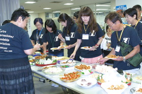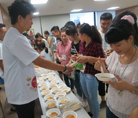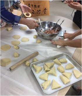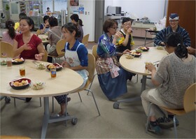 食文化についてもお話しがありました。タタール料理の写真や、講師ご自身の実家の食卓風景も写真で紹介していただきました。どれも手の込んだ美味しそうな料理がずらーっとテーブルに並んでいる食卓。。。。普段の食事ではなく、大切なゲストをお迎えする時の料理だったり、誕生日のように特別なお祝いの料理だといういうことです。そして、今回の講座では、講師が作ったタタールの代表的な家庭料理「サルマスープ」を参加者の皆さんにふるまっていただきました!