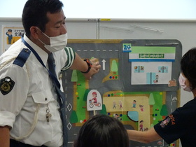 映像で地震の恐ろしさを見た後は、地震発生を知らせる音がどんなものかを聞きました。強い地震が起きる前、日本では緊急地震速報が流れます。テレビからはどんな速報音がするのか、スマートフォンから流れるのはどんな音なのかを理解し、実際に地震が起こったと仮定して、全員で頭を守る姿勢をとりました。
