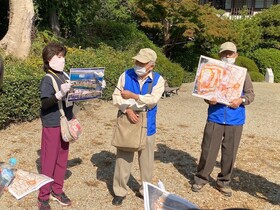 刈谷市のホームページには、多言語の「地震ハザードマップ」があります。自分が住んでいるところ、行動する地域の危険度がどれほどのものかを知っておくことはとても大切です。参加した方々がそれぞれ理解できる言語のチラシをお渡しし、ハザードマップの色を見ながら自分に関連した地域の危険度を把握しました。同時に、防災に関する情報を受け取ることができるように、刈谷市のメール配信サービスへの登録も促しました。