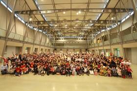 毎年恒例の国際交流フェスタ、今回は「跳んで、はずんで、スポーツフェスタ」をテーマに、産業振興センターあいおいホールにて開催されました。
