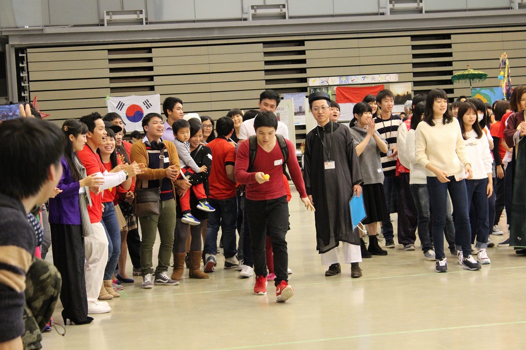 今回初めての試みとして、フェスタにスポーツ競技(玉入れとスプーンリレー)を取り入れました。一般来場者も加わり行った競技では、国や年齢を問わずチームで協力しあい声援を送り、勝利をめざしました。競技のあとには自然とうちとけることができ、交流が進みました。