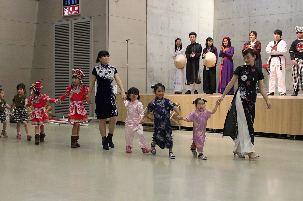 最後に行われたのはファッションショー。各国の民族衣装の紹介です。たくさんのカメラが構えられたランウェイを手を繋いで進む、可愛いチビッ子モデルの微笑ましい姿が見られました。