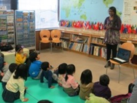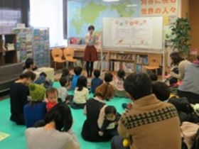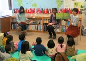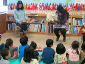 外国で親しまれている絵本を原語のまま紹介する読み聞かせ会を開催しました。(日本語訳での読み聞かせも同時に行いました。)
