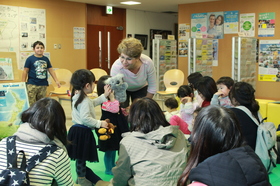 子ども達は、絵本を通して外国語ならではの言葉のリズムを体験し、笑顔いっぱいの会場となりました。