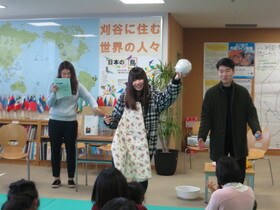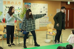 絵本の中の登場人物を、小道具も用意して3人で大熱演で読んでくれました。言葉を超えてお話が伝わってきました。日本語も堪能で、3人のチームワークがみごとでした。