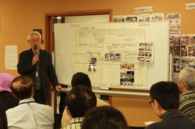 続いて、日本語教室20年間のあゆみを、ボランティアの水谷さんが説明しました。教室をスタートした頃のエピソードを、当時のリーダーだった藤井さんにお話していただきました。現在は週に3回教室を開いていますが、スタート当初は土曜日の夜間のみの開催だったそうです。