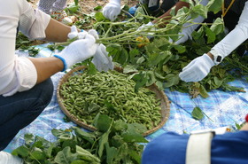 初めての企画「枝豆交流会」。文化交流グループメンバーのひとりが手塩にかけて育てた枝豆が今回の主役です。(枝豆は、大豆になる前の若い状態のものを言います。)日本の食生活に欠かせない「大豆」をもっと知ってもらいたいという思いから企画されました。